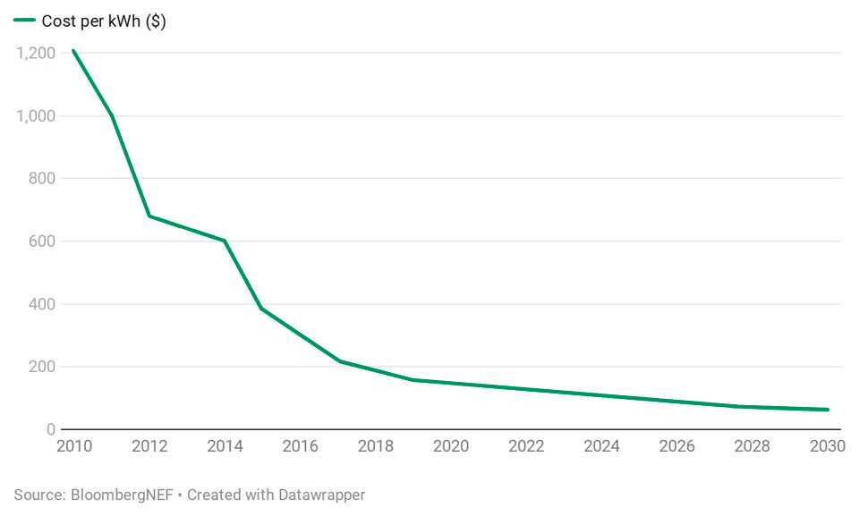Price of Lithium-Ion Battery Packs per kWh