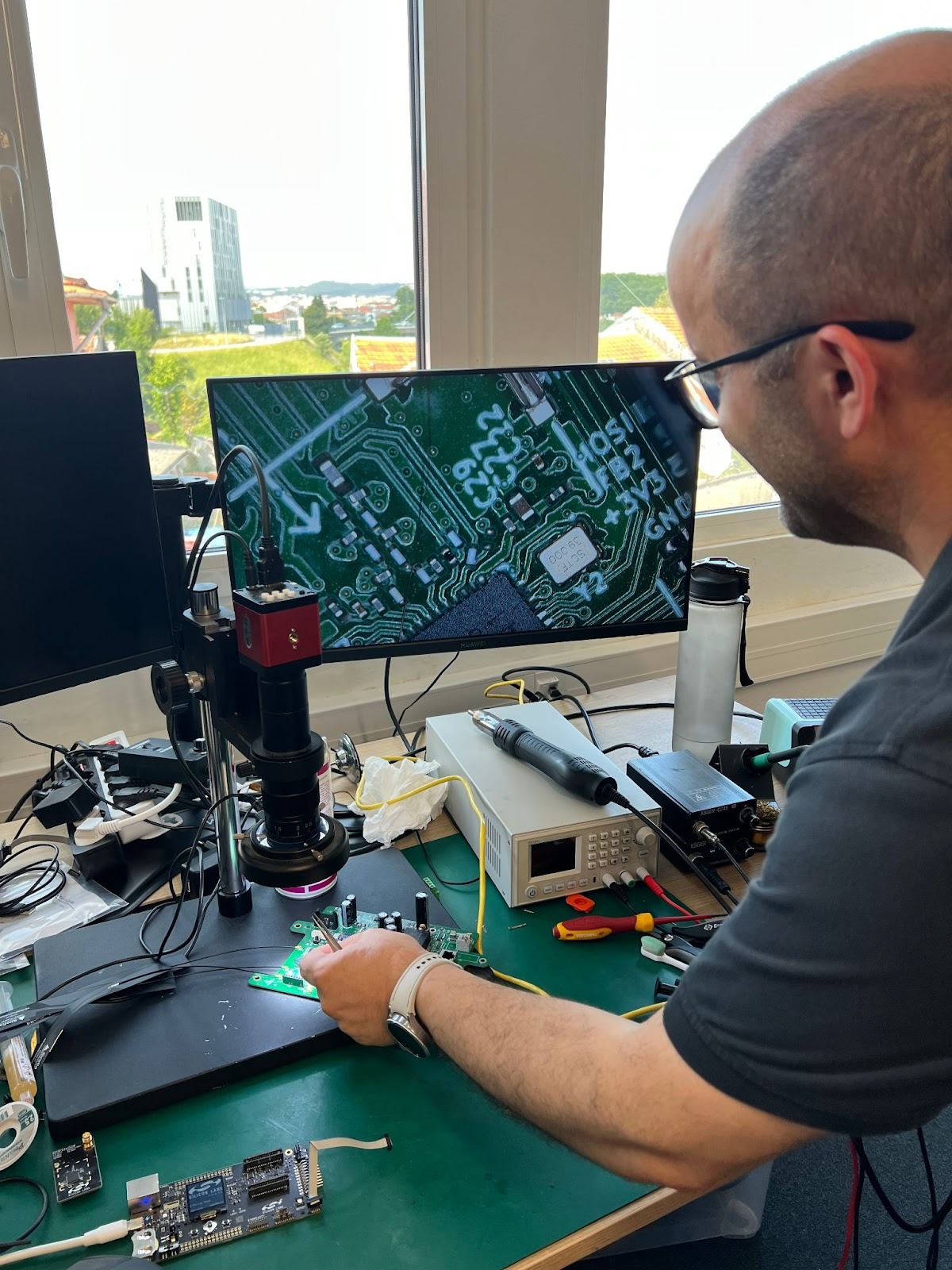 We manufacture in China, but we needed quick prototype turnarounds. We ordered two prototype PCBs from PCBWay, and our lead hardware engineer, Marco, hand-assembled them in our office.