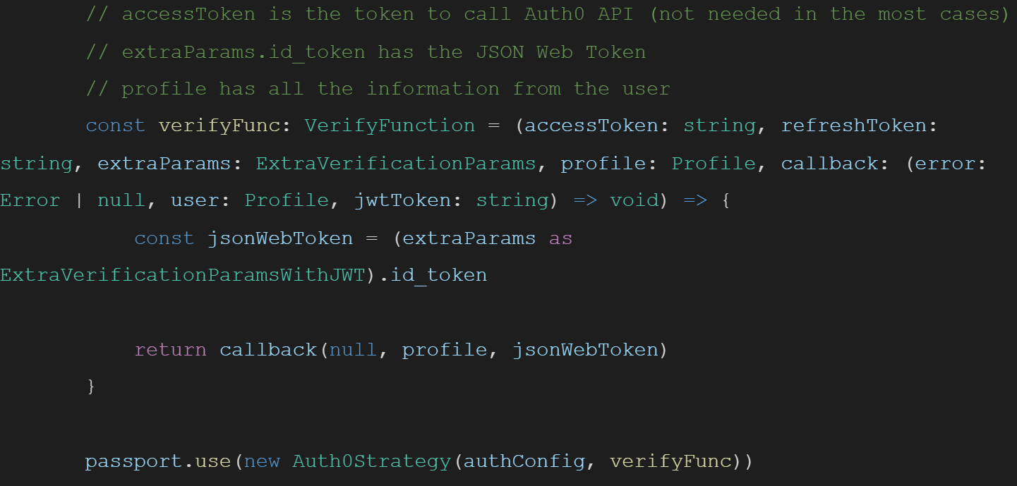 We use auth0 with passport js. You may need to adjust depending on how you integrate with auth0.