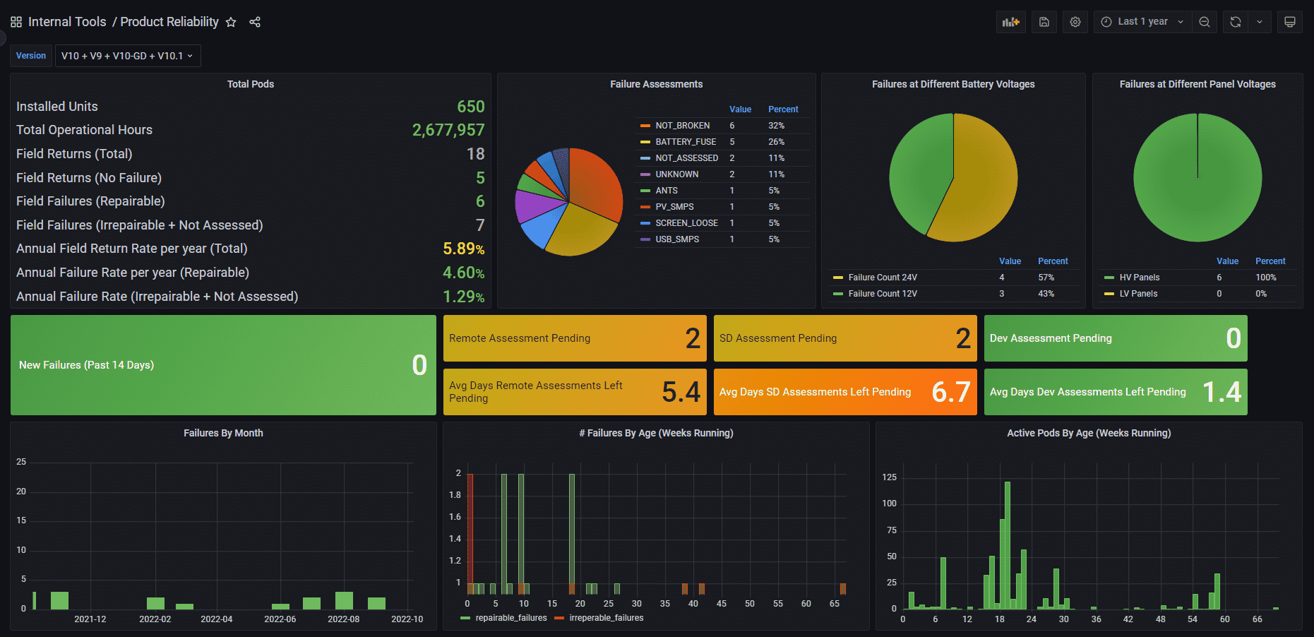 On the software side, we built features that give us real-time failure data and field removals, all visible in a reliability dashboard that numerous teams track closely. This dashboard helped us identify trends in failures across different hardware versions and calculates our failure rates on an ongoing basis.