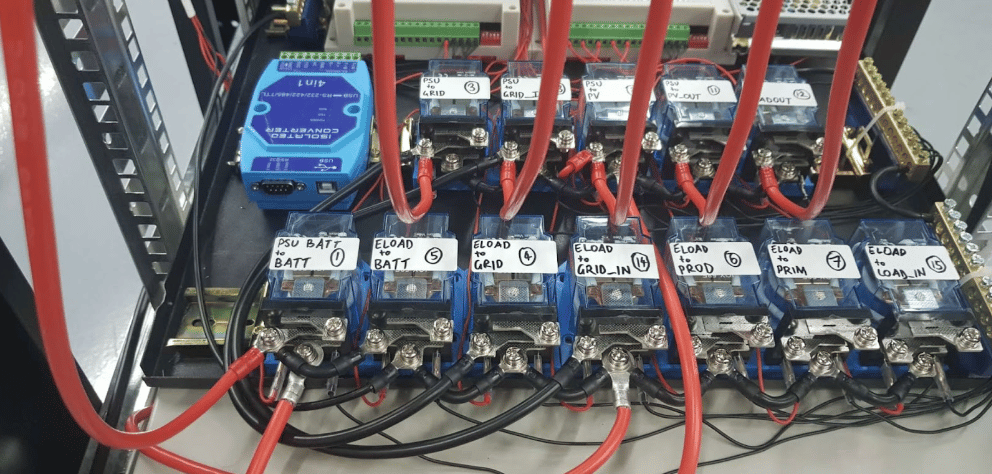 The setup includes 8 interconnected Pods, including all hardware iterations supported in the field, almost 5 (five) kWp of solar installed on the roof, and a complex array of relays that cycle vacuums, hair dryers, heaters, blenders, fans, and LEDs between the pods.