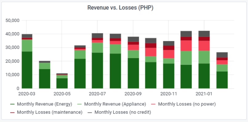 Our first appliance-driven pilot launched with a handful of fridges and freezers being leased, and we quickly saw that these ~10% of households were generating > 40% of the grid’s revenues, not including revenue on the appliances themselves. The range of appliances has only grown since now ranging from cricket incubators to rice cookers to washing machines and more. Look out for upcoming case studies that dig deeper into the role appliances play in our projects!