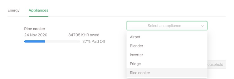There is a natural opportunity to link energy and appliance payments, tying accountability of paying off the appliance to keeping the electricity on in the household. To leverage this opportunity and simplify operations for our partners, we added appliance leasing into our payments service such that daily lease payments would automatically get deducted along with energy bills until an appliance is fully paid off. Now, our energy partners have the chance to easily add more appliances to their repertoire, both increasing opportunities for communities as well as ensuring their own financial success.
