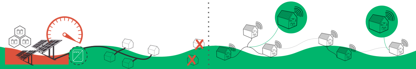 In contrast to centralized mini-grids, mesh-grids are decentralized and modular – generation and storage assets (solar panels and batteries), along with inverters, are installed at individual households.