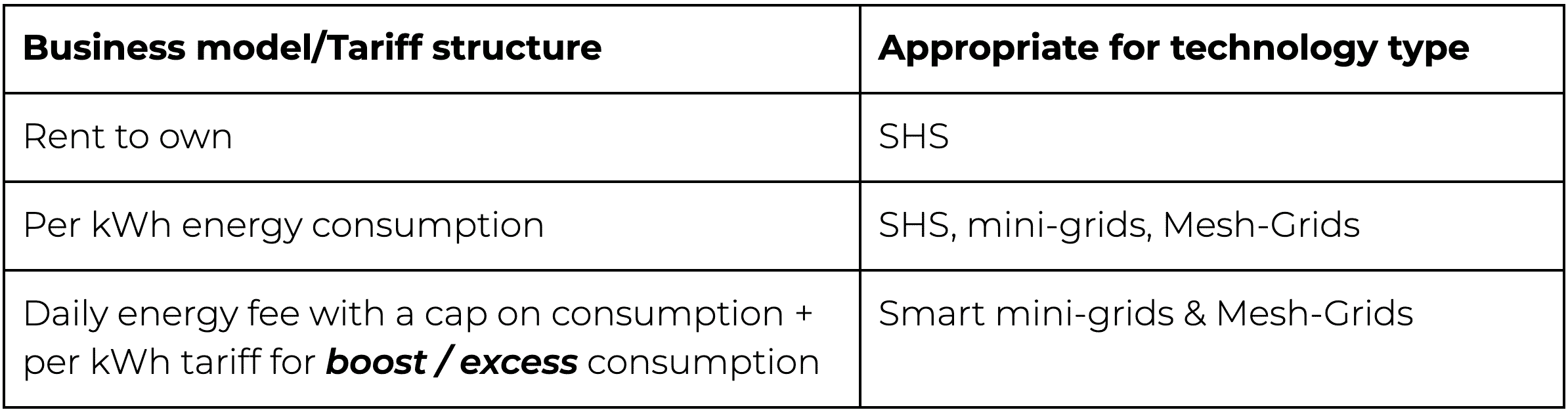 Nigeria is one of the only markets in the world where developers can charge off-takers with an array of business models and tariff structures, including but not limited to: