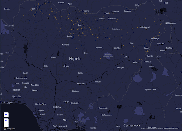 Mesh-grid overlay of a village in Kaduna that will be electrified via an Okra Mesh-grid in the coming months