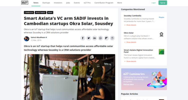 Smart Axiata's VC arm SADIF invests in Cambodian startups Okra Solar, Sousdey