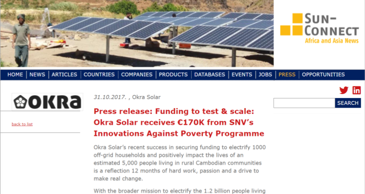 Funding to test & scale: Okra Solar receives €170K from SNV’s Innovations Against Poverty Programme