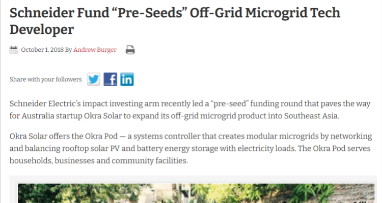 IoT-based Solar Energy Firm Okra Closes Funding from Schneider Electric, Japan’s GGG